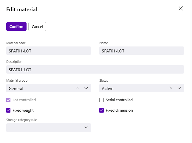 | Storage category rule: | When used in with storage categories on locations, this can be set to determine where a material can and cannot be stored. |
