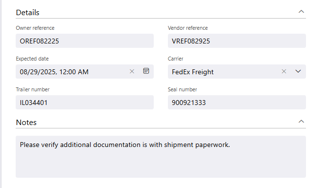 | Vendor lot: | The Vendor Lot assigned to the material in the shipping line. |