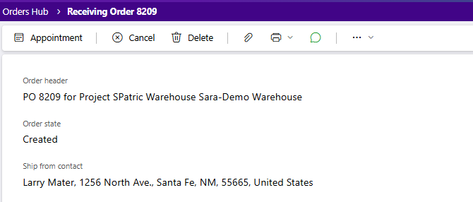 The Receiving order can be opened for further review and management by clicking the Order number.