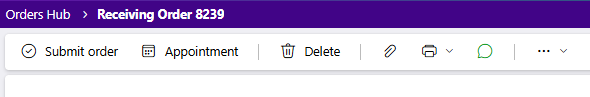 Icons along the top of the receiving order provide options to manage the order. For more details, please visit the Receiving order toolbar section below.