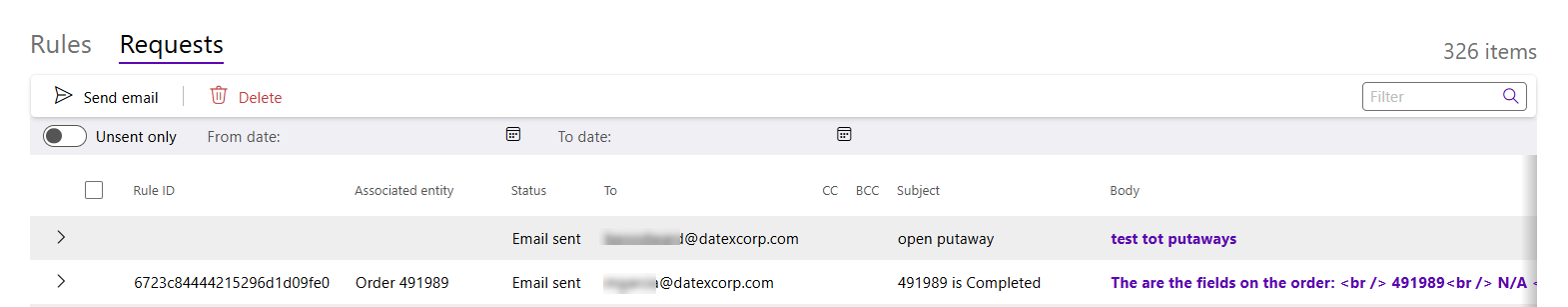 | Last executed on: | The last time the rule was triggered and an email was sent out. |