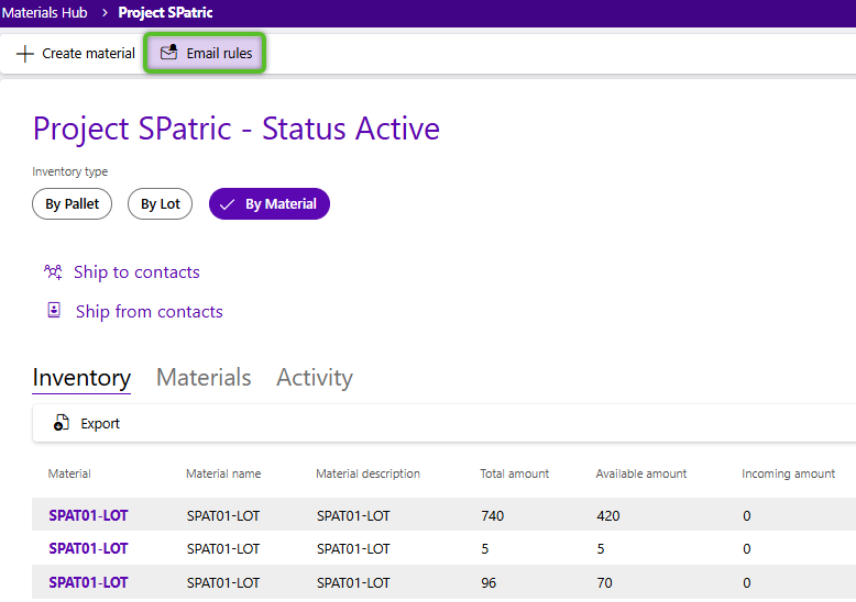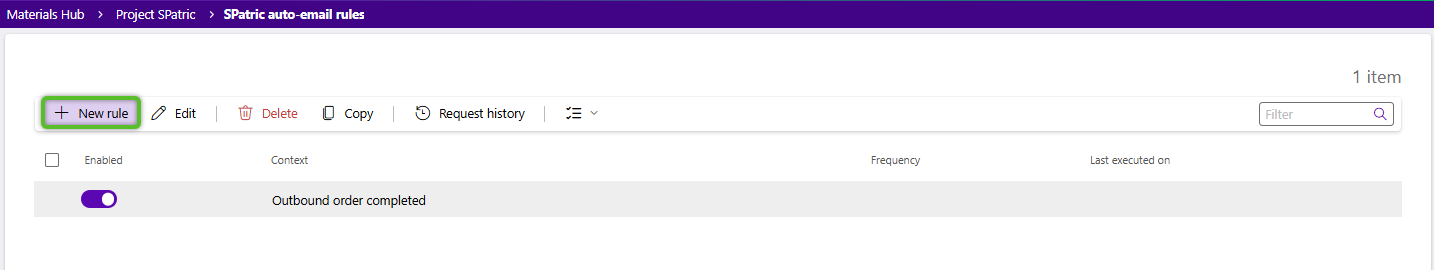 1. Click Email rules button in the project record toolbar to open the project's auto-email rules page.