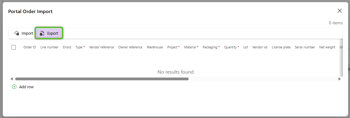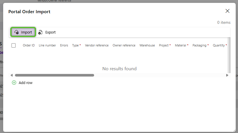 9. Save and close the spreadsheet. Click Import button in the Portal Import Order window to select the file for upload.