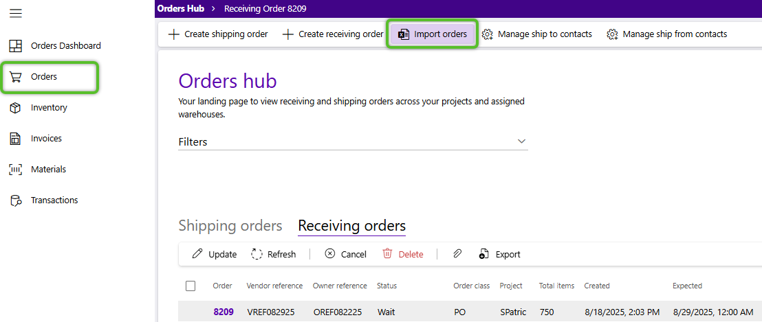 Imported orders will appear alongside other orders in Created status for review and management purposes.